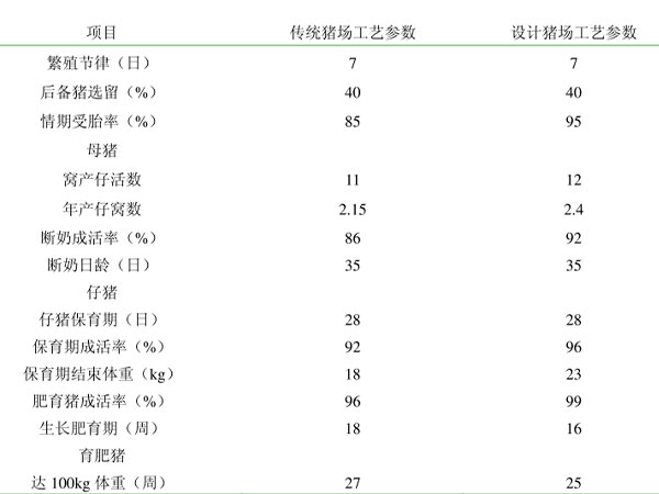 為了精確的確定現(xiàn)代化、規(guī)模化養(yǎng)豬場(chǎng)內(nèi)各種豬群豬數(shù)和存欄數(shù),應(yīng)首先確定本地區(qū)豬場(chǎng)生產(chǎn)過程中的各個(gè)工藝參數(shù)。需要根據(jù)豬群的經(jīng)濟(jì)管理水平、遺傳基礎(chǔ)、物質(zhì)保障條件等條件,并結(jié)合相應(yīng)豬群的歷年生產(chǎn)記錄和各項(xiàng)資料,確定豬場(chǎng)的工藝參數(shù)。在一個(gè)現(xiàn)代化豬場(chǎng)中,有大量的先進(jìn)設(shè)備將運(yùn)用到其中,包括母豬電子飼喂站、自動(dòng)喂料系統(tǒng)等一些當(dāng)前先進(jìn)的養(yǎng)豬設(shè)備。正由于這些先進(jìn)設(shè)備的應(yīng)用,將大大地提高情期受胎率、窩產(chǎn)仔活數(shù)、斷奶成活率、保育成活率等數(shù)據(jù),能夠充分的提高生產(chǎn)效率,從而達(dá)到非常可觀的效益。